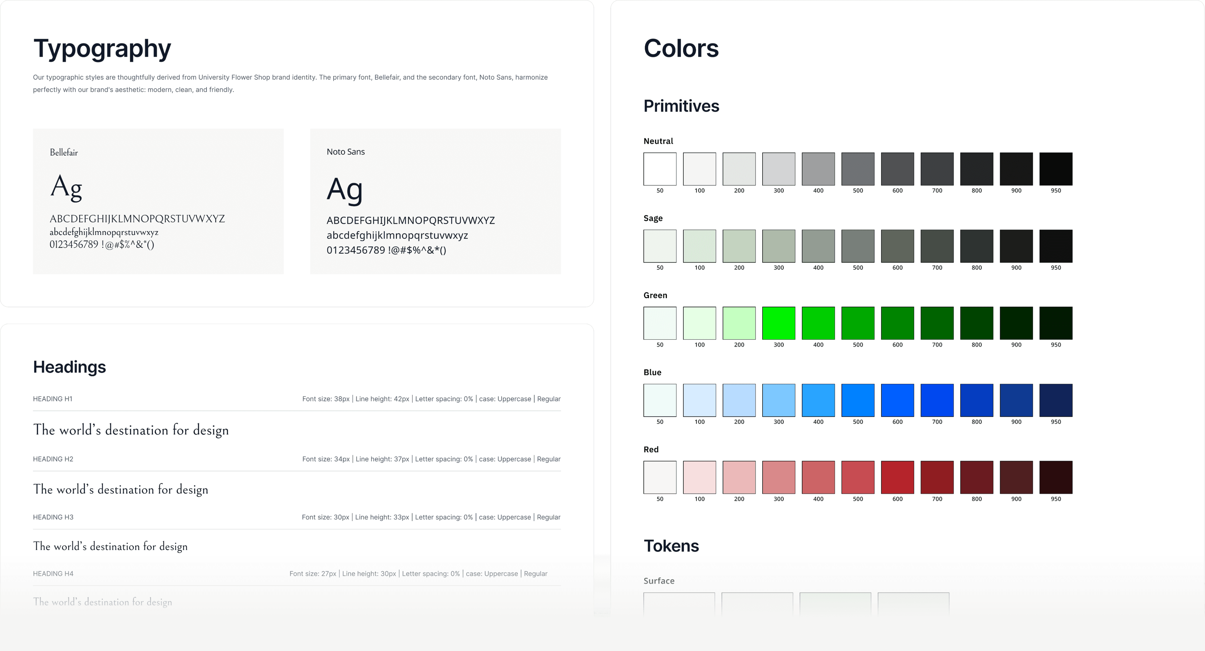 Overview of the full design system including the typography scale, color palette, a variety of core components.